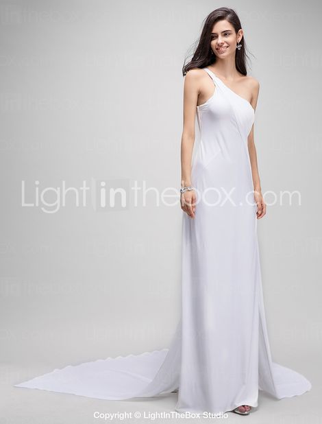 Formal Evening Dress Sheath / Column One Shoulder Watteau Train Jersey with
